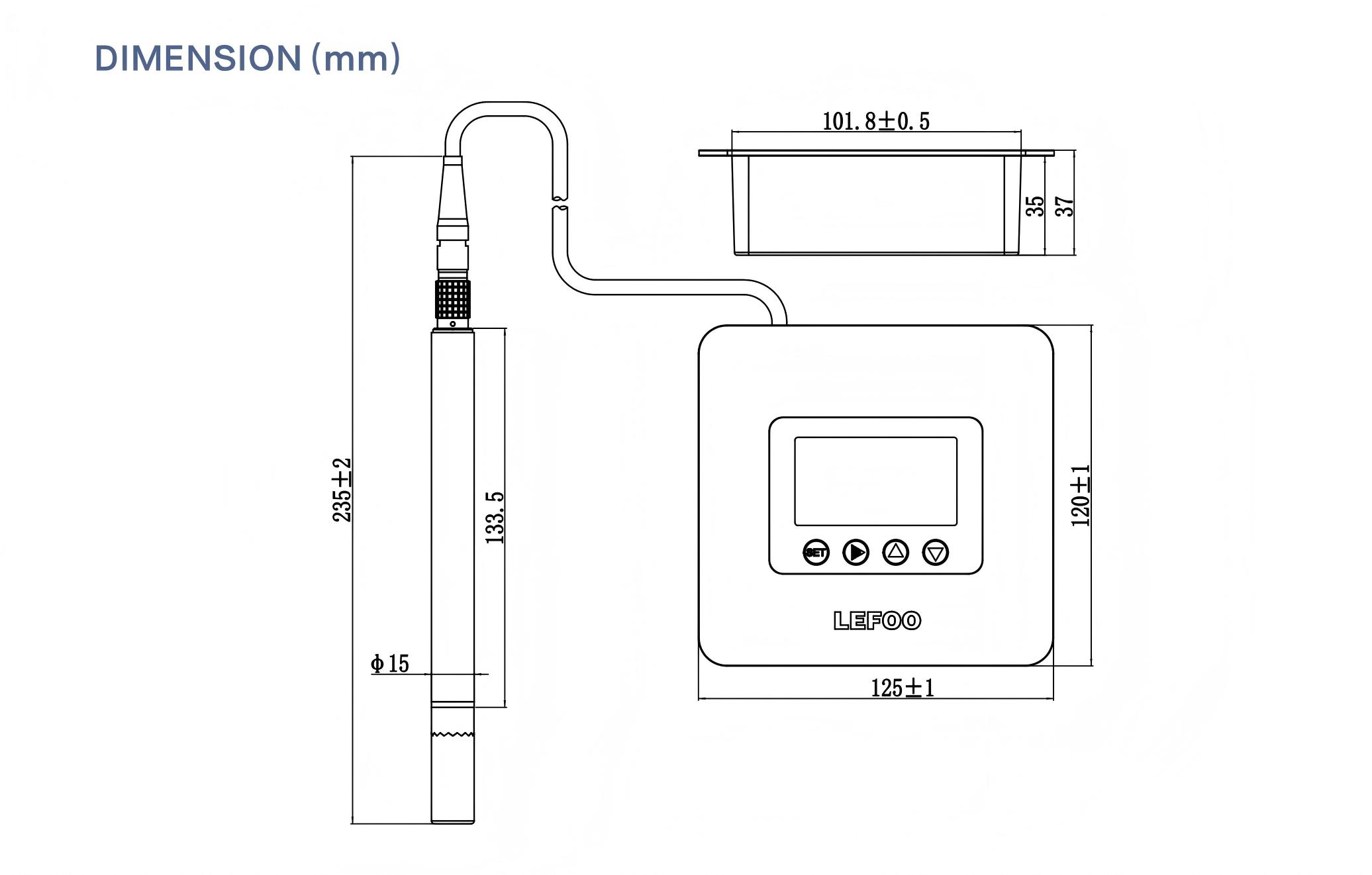 Protection Level: Front panel: lP65 after installation; Probe: lP65 (stainless steel sintered and H₂O₂ filter); lP30 (metal U-groove filter)